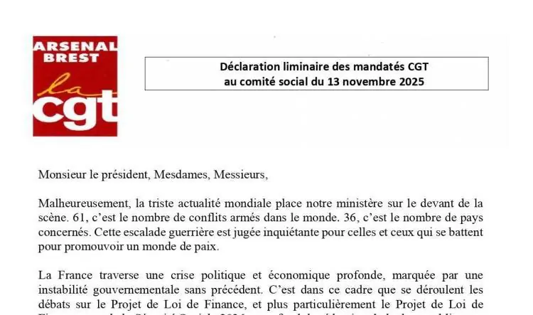 Déclaration liminaire des mandatés au Comité Social